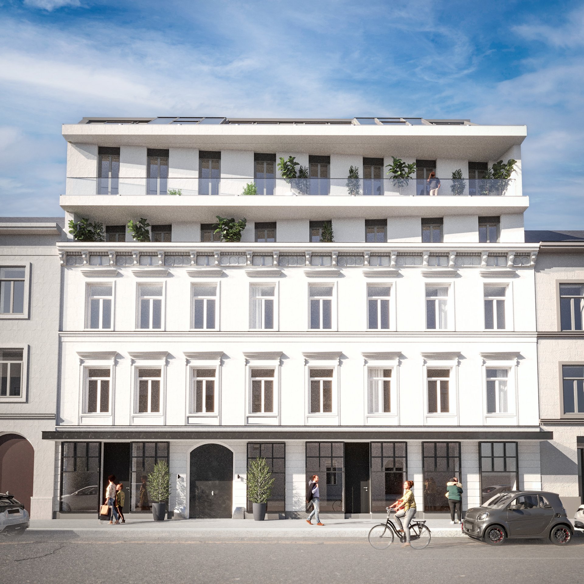 Das Gebäude wird umfassend revitalisiert: Ein zusätzliches Regelgeschoss und ein exklusiver Dachausbau erweitern den Wohnraum, während ein moderner Personenaufzug, neue Steigleitungen und eine zentrale Heizungsanlage höchsten Wohnkomfort garantieren. Nach Abschluss der Sanierung entstehen insgesamt 11 Erstbezugswohnungen – jede einzelne ein Meisterwerk modernen Wohnens.