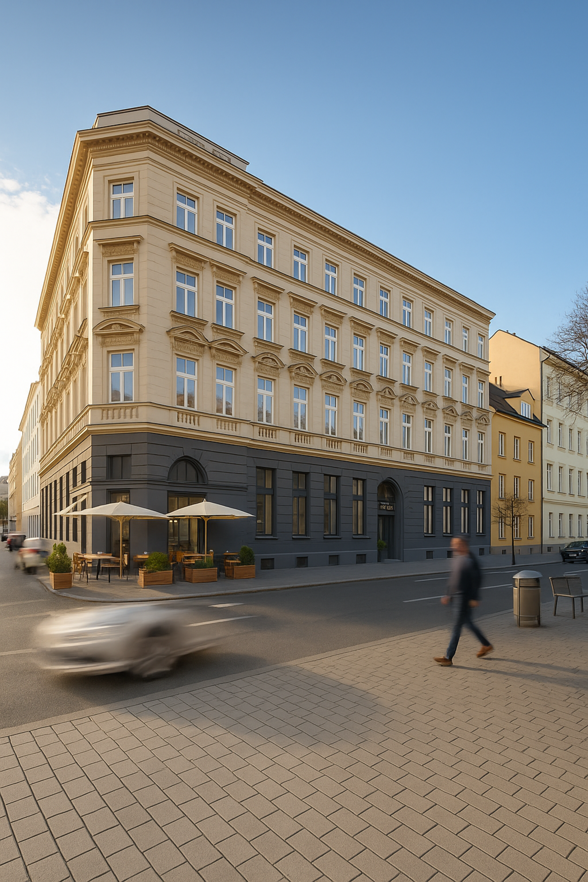 Das Gebäude wird umfassend revitalisiert: Ein zusätzliches Regelgeschoss und ein exklusiver Dachausbau erweitern den Wohnraum, während ein moderner Personenaufzug, neue Steigleitungen und eine zentrale Heizungsanlage höchsten Wohnkomfort garantieren. Nach Abschluss der Sanierung entstehen insgesamt 11 Erstbezugswohnungen – jede einzelne ein Meisterwerk modernen Wohnens.